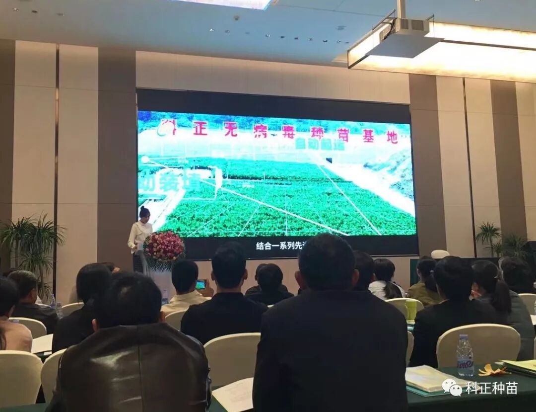 重庆科正花果苗木有限责任公司总经理王越结合视频和PPT的方式,介绍了科正公司优良的企业形象、先进的无病毒种苗基地、规范化的工作环境等