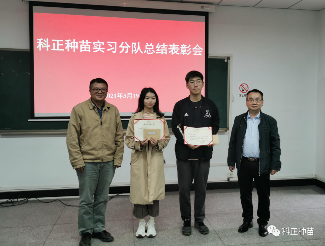 最后,西南大学园艺园林学院宋洪元院长与科正公司副总蒋伟为本次实习活动的优秀实习生颁发荣誉证书及奖金。
